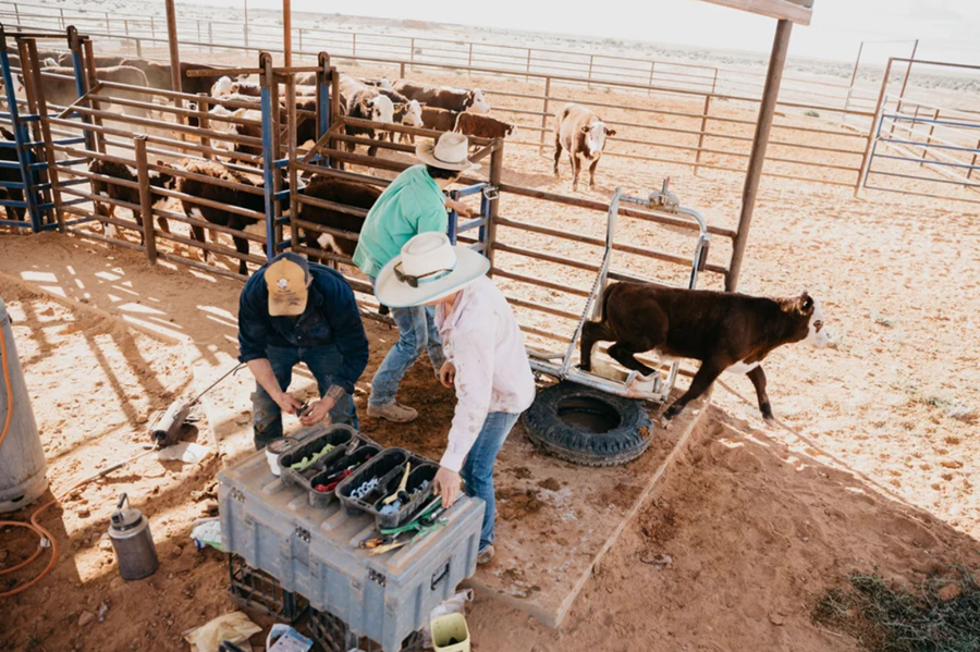 A operação conta com poucos funcionários residentes, cerca de oito, que cuidam de todas as atividades da estação. Caminhões boiadeiros gigantes, conhecidos como road trains, são usados para transportar até 330 animais por viagem.