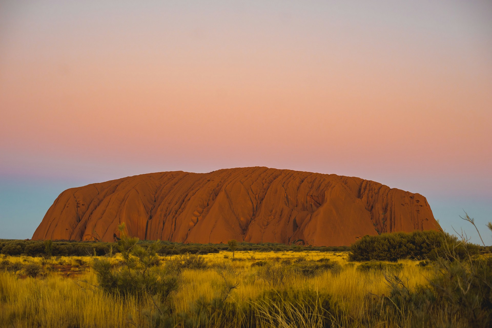 Uluru é uma das maiores rochas isoladas do mundo. Sua massa de arenito, com 600 milhões de anos, estende-se majoritariamente sob o solo, elevando-se 348 metros acima do deserto. Essa estrutura natural resiste ao tempo, moldada por erosão e ventos incessantes.