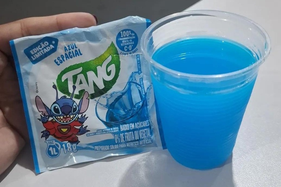 Apesar da composição industrial, não é descrito como um produto excessivamente doce, o que torna a experiência mais equilibrada. O “Azul Espacial” não faz parte do portfólio regular da Tang, sendo criado como edição limitada.